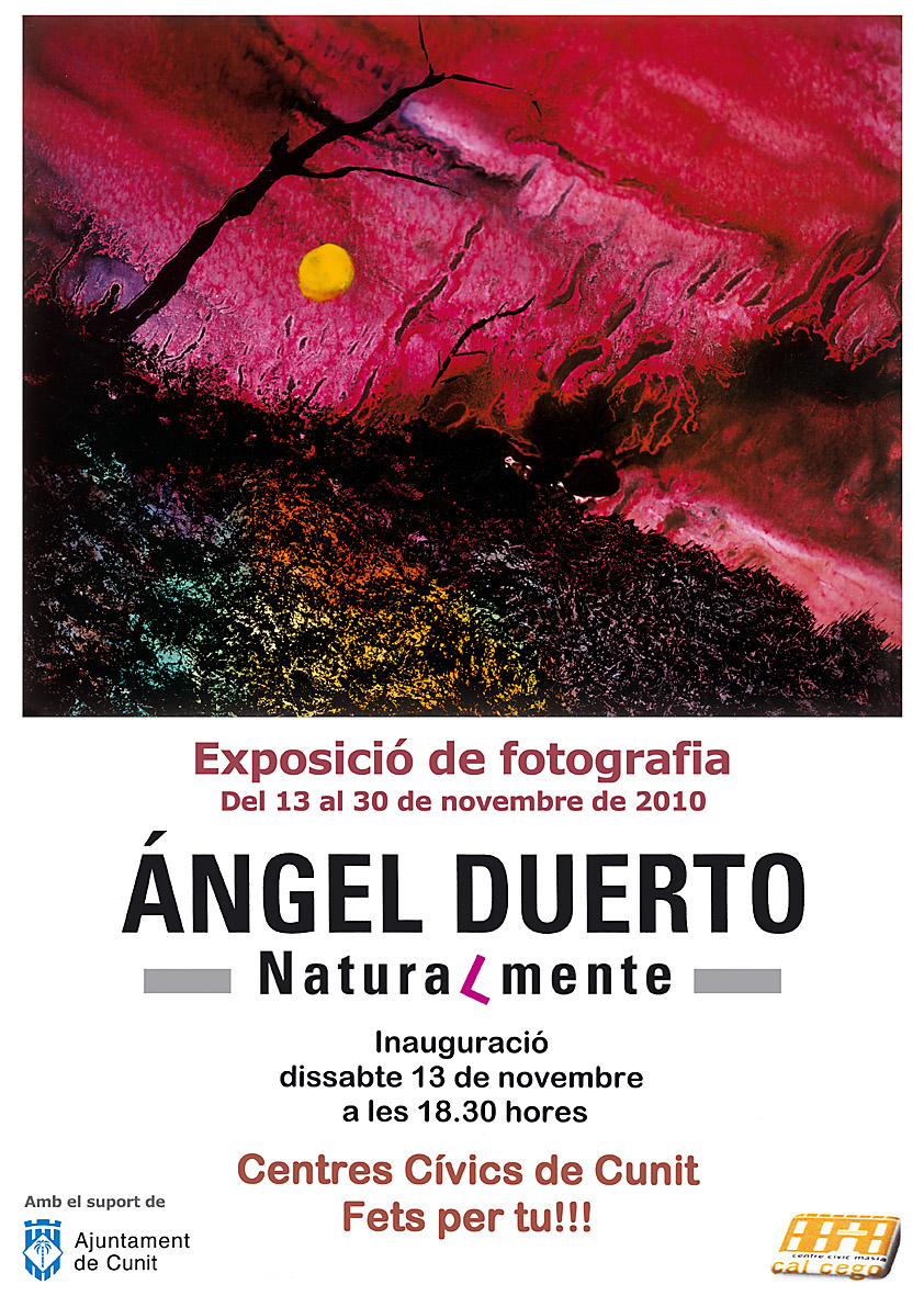 El pasado sábado, día 13 de noviembre, se celebro en la Sala de Exposiciones del Centro Cívico “Cal Cego” de Cunit (Tarragona) la inauguración de la exposición fotográfica NatuaLmente de nuestro ex presidente y socio de honor de la RESFZ, Ángel Duerto Oteo.